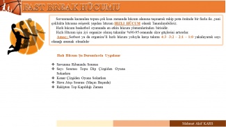 | FAST BREAK HÜCUM VE SAVUNMASI SLAYTI | clooney | Sunular ve Slaytlar | 5 | 22-09-2008 13:53 |